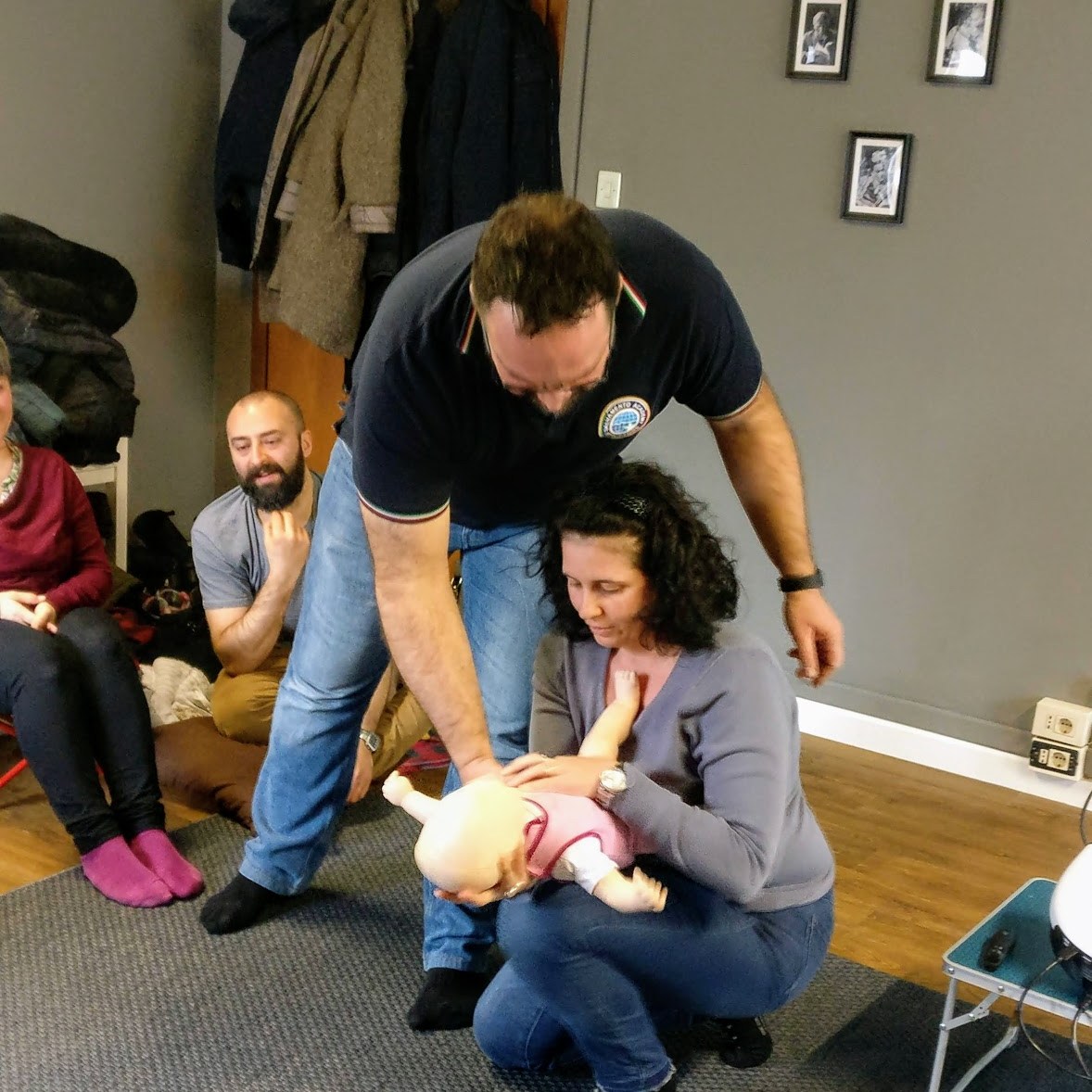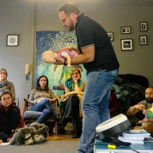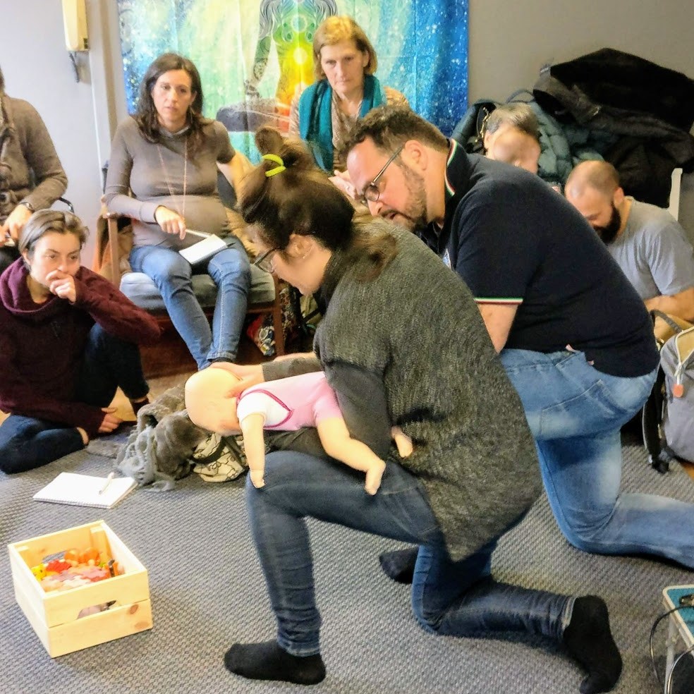 Abbiamo trattato la sicurezza in casa, in acqua, durante la nanna, in auto e a tavola. Tutti hanno avuto la possibilità di fare domande e trovare delle risposte ai dubbi più diffusi quando si diventa o si sta per diventare genitori. Massimo ha permesso a tutti di provare (e quindi imparare) le manovre di distruzione delle vie aeree nel neonato e anche la manovra di Heimlich, utilizzabile dai 12 mesi in su (anche negli adulti).